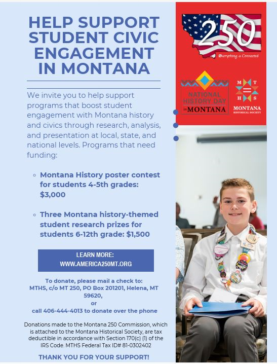 America250 is asking for support for programs that boost student engagement with Montana history and civics! Check out the flyer below, and Learn more and check out their social studies resources at https://www.america250mt.org/resources.